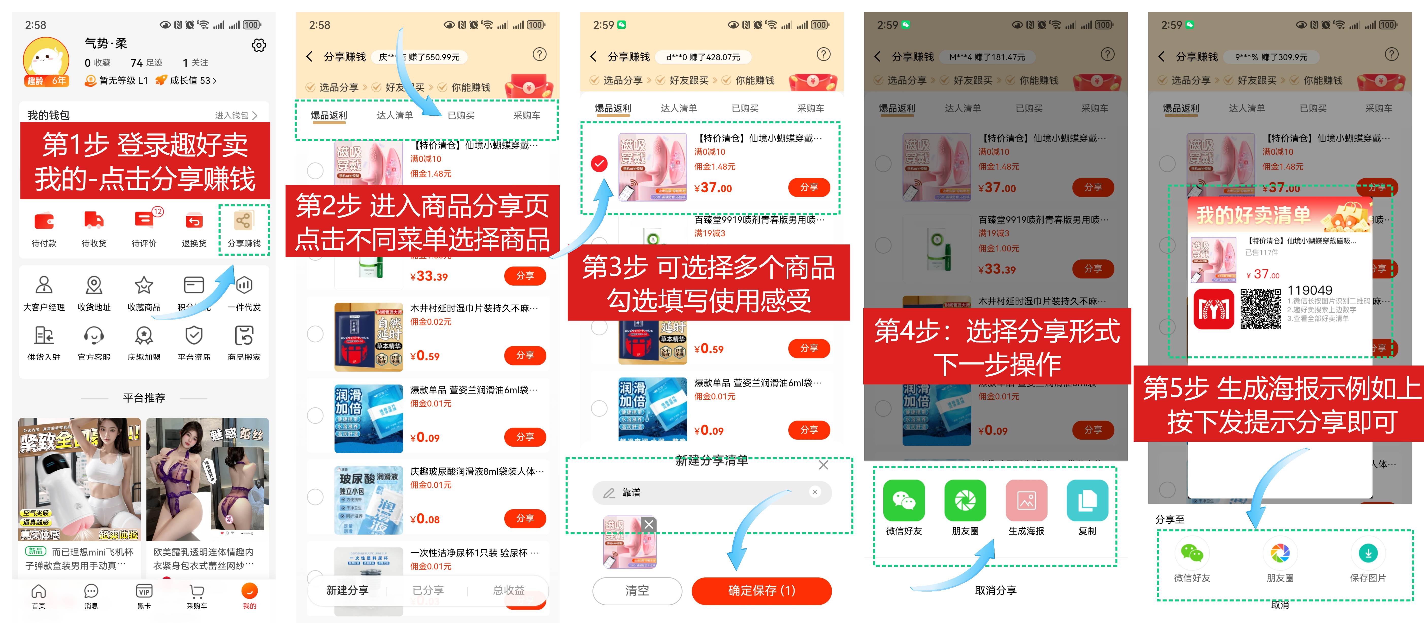 **【如何用懒时便利拓展私域分销赚钱?】👇** https://shhai2.oss-cn-shanghai.aliyuncs.com/QINGQU/19-%E5%98%9A%E5%98%9A%E8%B1%A1%20%E6%87%92%E6%97%B6%E4%BE%BF%E5%88%A9%E5%88%86%E9%94%80%E7%A7%81%E5%9F%9F%E6%8B%93%E5%B1%95.mp4 **好消息!嘚嘚象支持全员分销!!!针对于不同分销员有以下分销方式:** | 分销类型 | 适用于 | 特点 | | -------- | -------------------------------------------------------------------------------------- | -------- | | 批发分销 | 适用于有成人用品店店主微信资源。 | 操作简单 | | 零售分销 | 适用于有终端消费者(微信群、朋友圈等)微信资源。 | 操作简单 | | 私域分销 | 自己搭建私域嘚嘚象小程序,一件代发趣好卖平台的商品,实现更高利润。同时还支持用户分销。 | 利润高 | **一.批发分销** 在趣好卖APP-点击我的-分享赚钱,分享你的货单到朋友圈和微信群好友等即可自动赚取分销收益。 需要注意:分销的下级必须是新用户才可以获得分成,仅限安卓版本和趣好卖小程序上面分销(IOS 暂不支持)建议在趣好卖微信小程序上进行分销操作。  ****二.零售分销**** 1.微信扫码识别以下小程序码,进入嘚嘚象小程序自营零售端店铺  2.点击右上角的分享按钮进行分享即可,下级点击即成为你的客户,如需分享单个商品则进入单个商品页面直接分享也可。  3.分销订单的订单和佣金提现都可以在我的,分销中心内进行操作。    **三.私域搭建** 你还可以通过私域分销赚钱,**搭建自己的私域小程序**做分销销售,自己设定价格获取更高利润。 优势是:支持一件代发趣好卖平台的全部货源(嘚嘚象私域订单可操作一键下单到趣好卖平台)、商品免费一键导入到嘚嘚象私域店铺(通过嘚嘚象 APP 的商品搬家功能),快速批量上架开店,上千个商品只需半天即可上架销售。重要的是整个过程免费!!! 嘚嘚象APP私域小程序开店及一件代发步骤: 1.注册趣好卖App账号,用于一件代发货源渠道,地址 ok9288.com 也可在各大应用商店下载。  2.注册嘚嘚象App账号,注册后开通懒时便利微信私域小程序店铺,地址 260cn.com 也可在各大应用商店下载。  3.打开嘚嘚象App,根据新手指引(开通懒时便利店铺)或店铺栏目点击 0 元申请开店,完善店铺开店信息,结算方式申请(直接结算到自己的微信支付宝),发货信息,店铺类型(快递店、外卖店)此处只能选择一次,如果做全国快递发货则选择快递模式,如果是同城配送则选择外卖店模式,然后设置店铺商品分类等信息。 填写好以上信息后提交开店申请,一般三个工作日审核,如需催审请添加下方订单群二维码催审。 店铺申请通过后,可以点击-订单-分享店铺-查看自己的外卖店铺前端网址及分享二维码。点击--我的--营业状态-设置营业状态选择是否开业。 4.打开嘚嘚象App,导入趣好卖平台的商品,(趣好卖APP查看商品,点击分享,复制链接,或者直接复制趣好卖商品的H5链接PC网址均可),然后在嘚嘚象APP应用中心找到应用“商品搬家”选择导入趣好卖商品到嘚嘚象,粘贴链接,选择嘚嘚象店铺的类目,点击导入即可。此功能免费。把你想要销售的商品批量快速导入。 5.在嘚嘚象App-店铺-商品管理列表,更改销售价格为零售价。 6.进去嘚嘚象App的网页版 [https://pc.dedexiang.cn](https://pc.dedexiang.cn),根据实际情况设置店铺活动。 7.然后在嘚嘚象App或者网页版点击营业即可。 如果是快递店模式,则需要配置一件代发账号,快递店订单一件代发参见:[https://help.eqingqu.com/knowbase/document/980.html](https://help.eqingqu.com/knowbase/document/980.html) 嘚嘚象来单后,需要在嘚嘚象PC端-订单-更多按钮的一件代发-操作一键操作下单发货,把订单一键传输到你的趣好卖APP绑定账号上,实现快速发货,供货方发货后订单物流信息自动回传到嘚嘚象私域店铺后台,无需手动填写发货信息。 如发生售后则可以跟代发店铺客服进行沟通,进行售后处理。如需要售后则需要在趣好卖平台对应订单上进行相关操作。 8.嘚嘚象店铺还支持店铺分销,迅速打造品牌“无限货架”全民帮卖货 功能介绍: 可以实现庆趣店铺的私域分销,设置下级一级分销商,每个分销商可以设置独立的订单分成,分销简单,只需分享自己的店铺二维码到微信群、朋友圈、微信好友等渠道即可开启裂变分销,下级识别点击即可成为客户,实现快速分销。 1.嘚嘚象-百宝箱-分销功能-开启全店分销状态。  2.立即分享开始赚钱,可保存二维码到本地,也可直接分享微信好友和朋友圈。  **分销流程:将店铺二维码发给分销员,分销员扫码后进入该店铺,然后点击店铺右上角的分享店铺按钮生成分销员自己的二维码保存后,分享该二维码进行分销,如分销员直接分享原店铺二维码无法实现分销需要将自己生成的二维码进行分销**。 以上为嘚嘚象为想做成人用品的用户提供的三种分销模式,分销商可以根据自己的实际情况来选择搭配分销模式的使用,关于分销如有问题可以联系下方的平台大客户经理咨询,可以提供更多支持和政策。  嘚嘚象服务群(下载钉钉 APP 加入)  趣好卖平台相关问题可以联系以上大客户经理